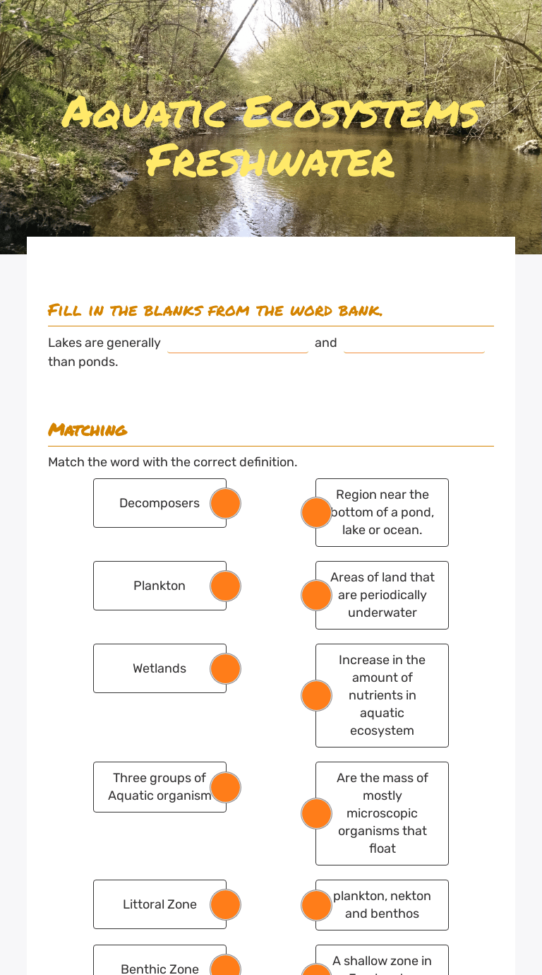 Aquatic Ecosystem Worksheet : Aquatic Ecosystems Activities Worksheets Teachers Pay Teachers :. Plants have much harder time obtaining nitrogen as they can only absorb nitrogen when it is mixed with oxygen or hydrogen. Nitrogen is mixed with oxygen or hydrogen through a process called nitrogen fixation. Learn more about biotic factors with this curated resource collection. Learn the definitions of each approach, and review the differences between them. Yellow ph less than 6.0, blue ph above 7.6) lights with clamp attachment;